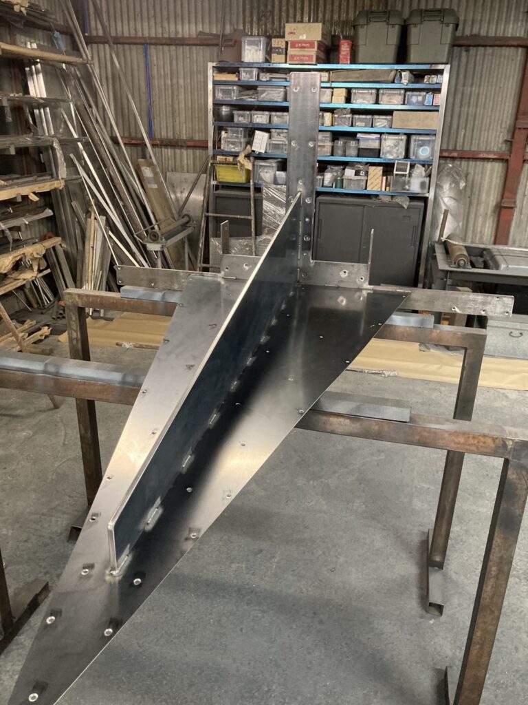 鉄工所で完成したばかりの鉄骨。この後塗装して現場に搬入、取り付け。